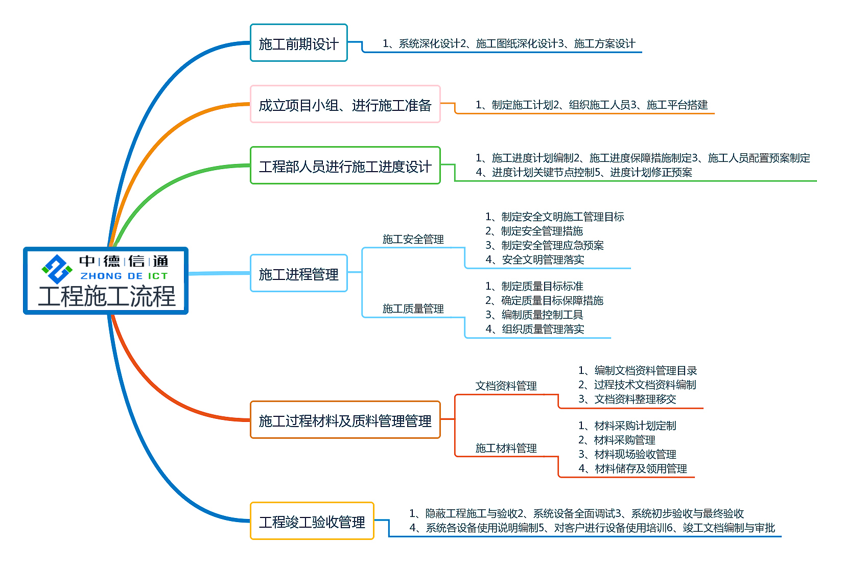 根據中德信通多年的學習和項目施工管理經驗,我公司建立起一整套的項目施工管理流程如下: