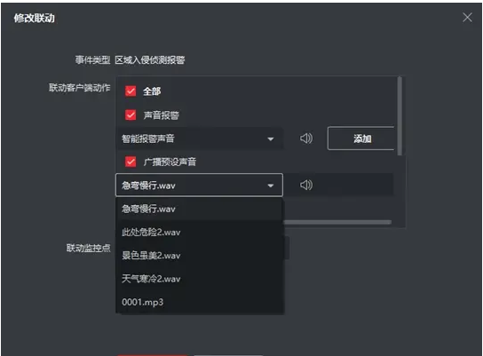 1、事件聯動(dòng)廣(guǎng)播預設音頻: